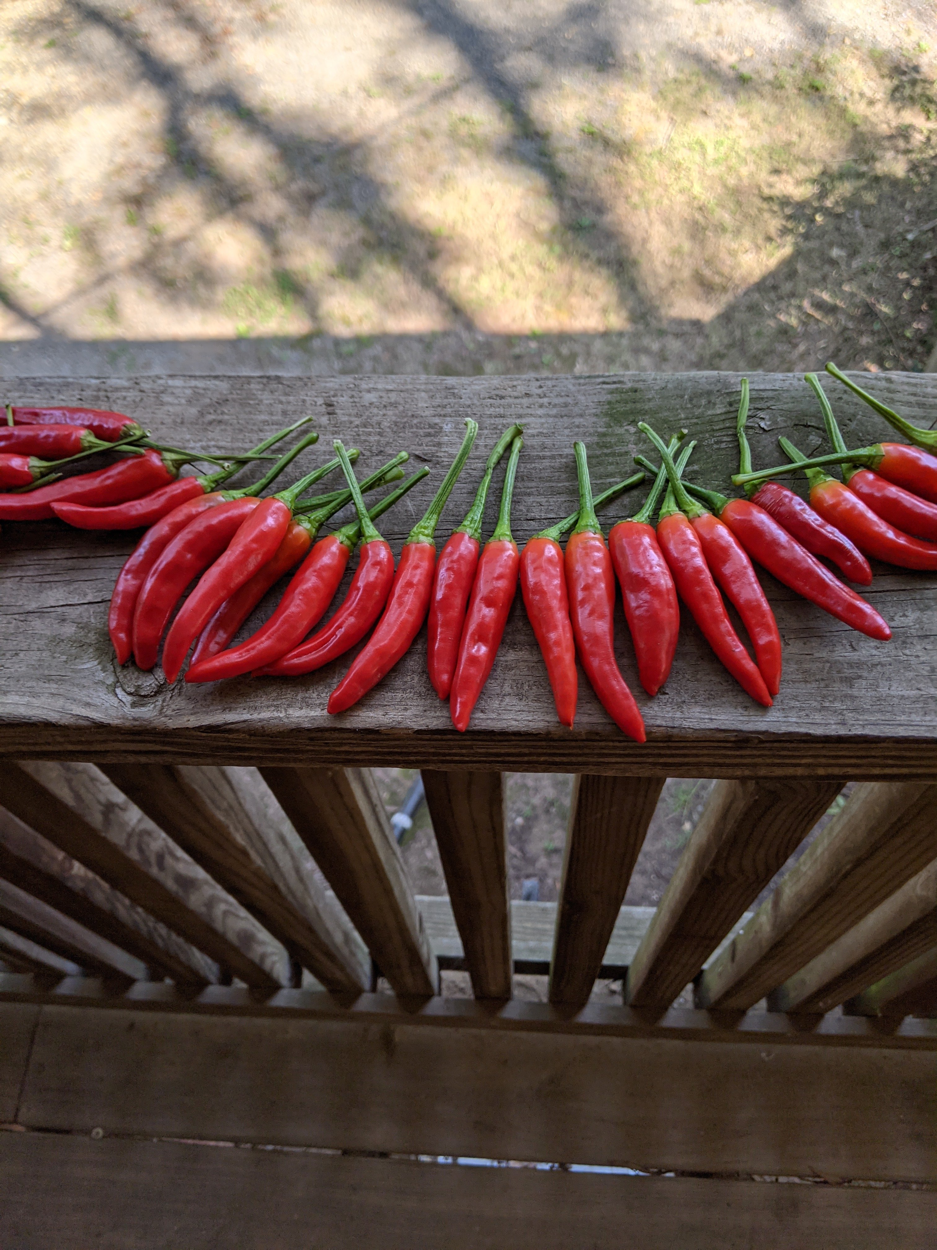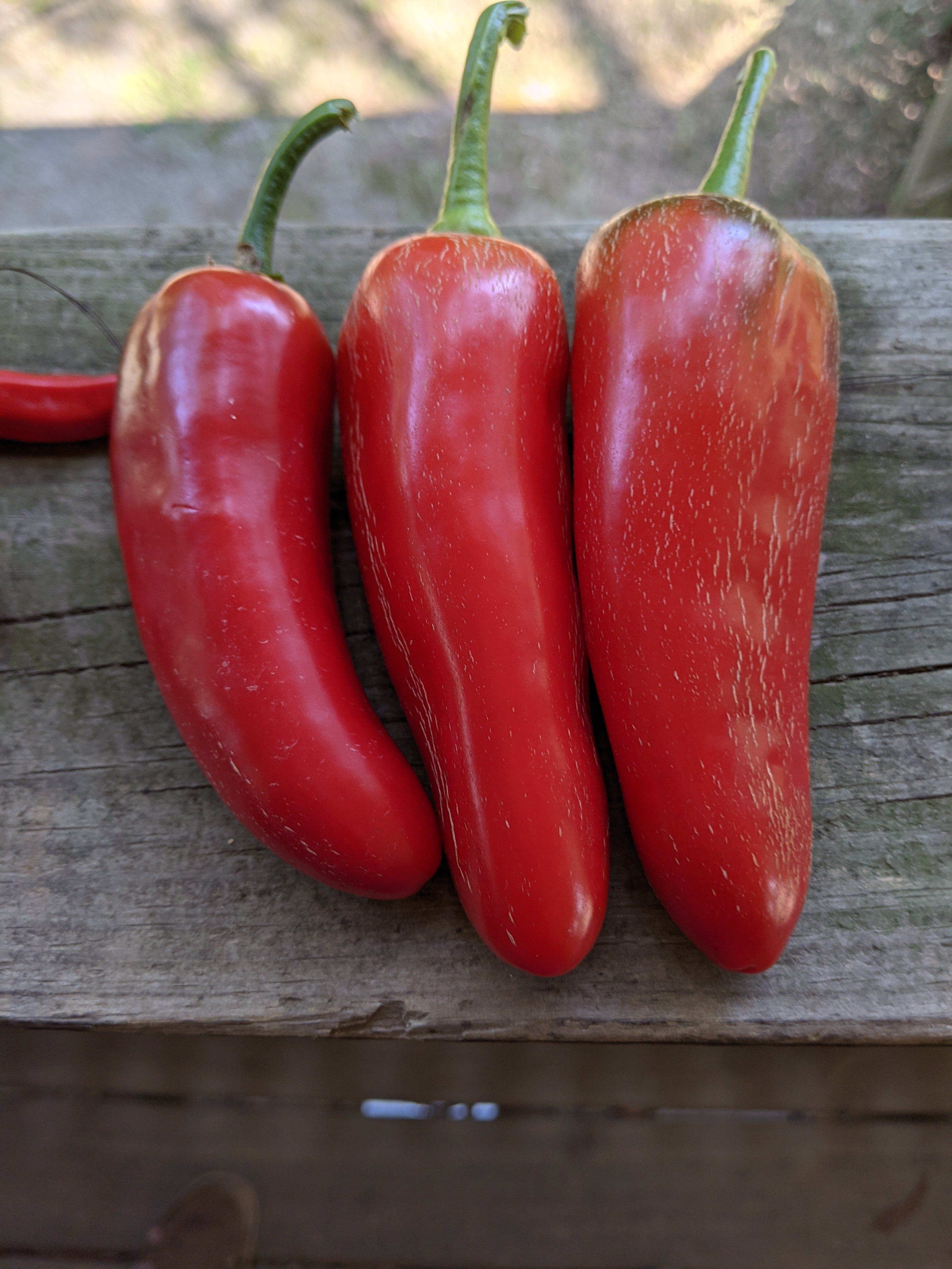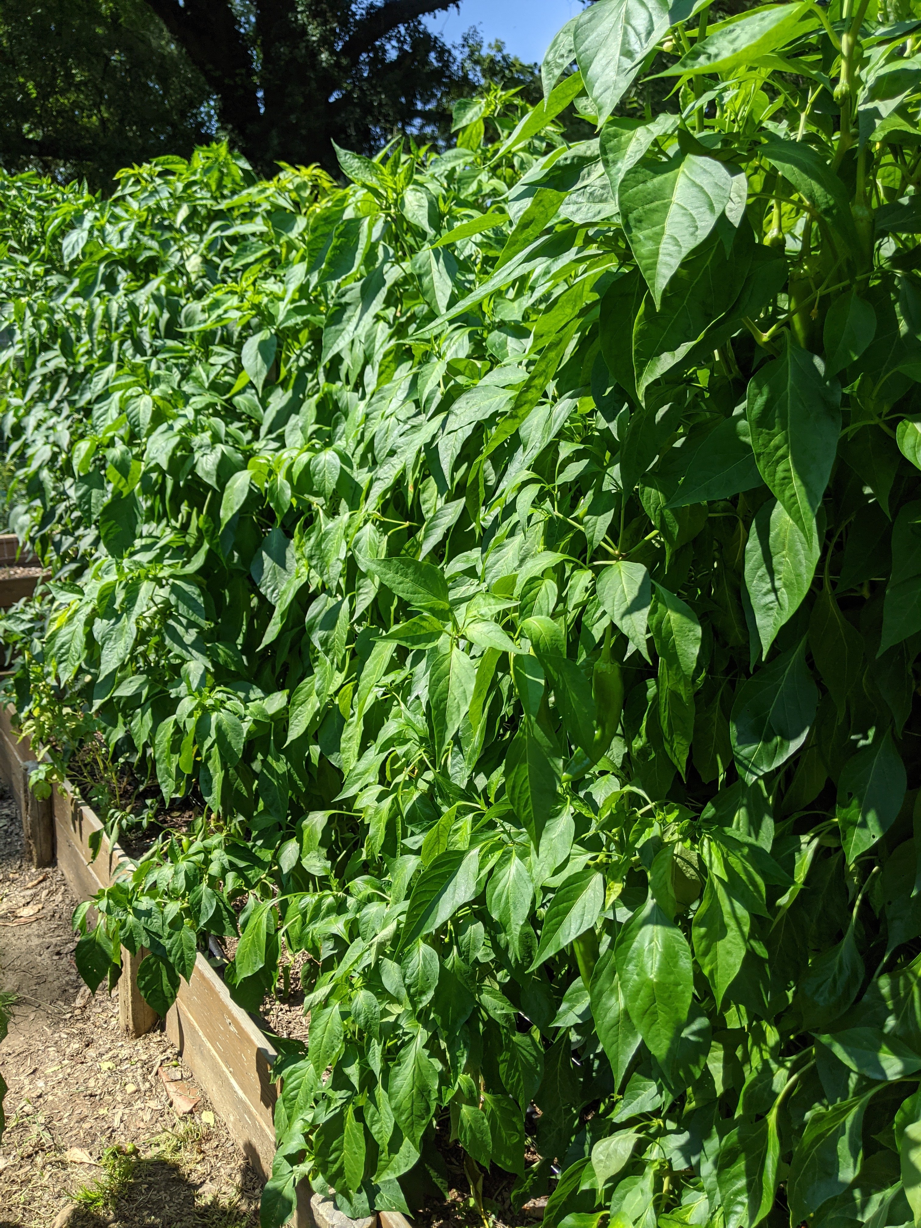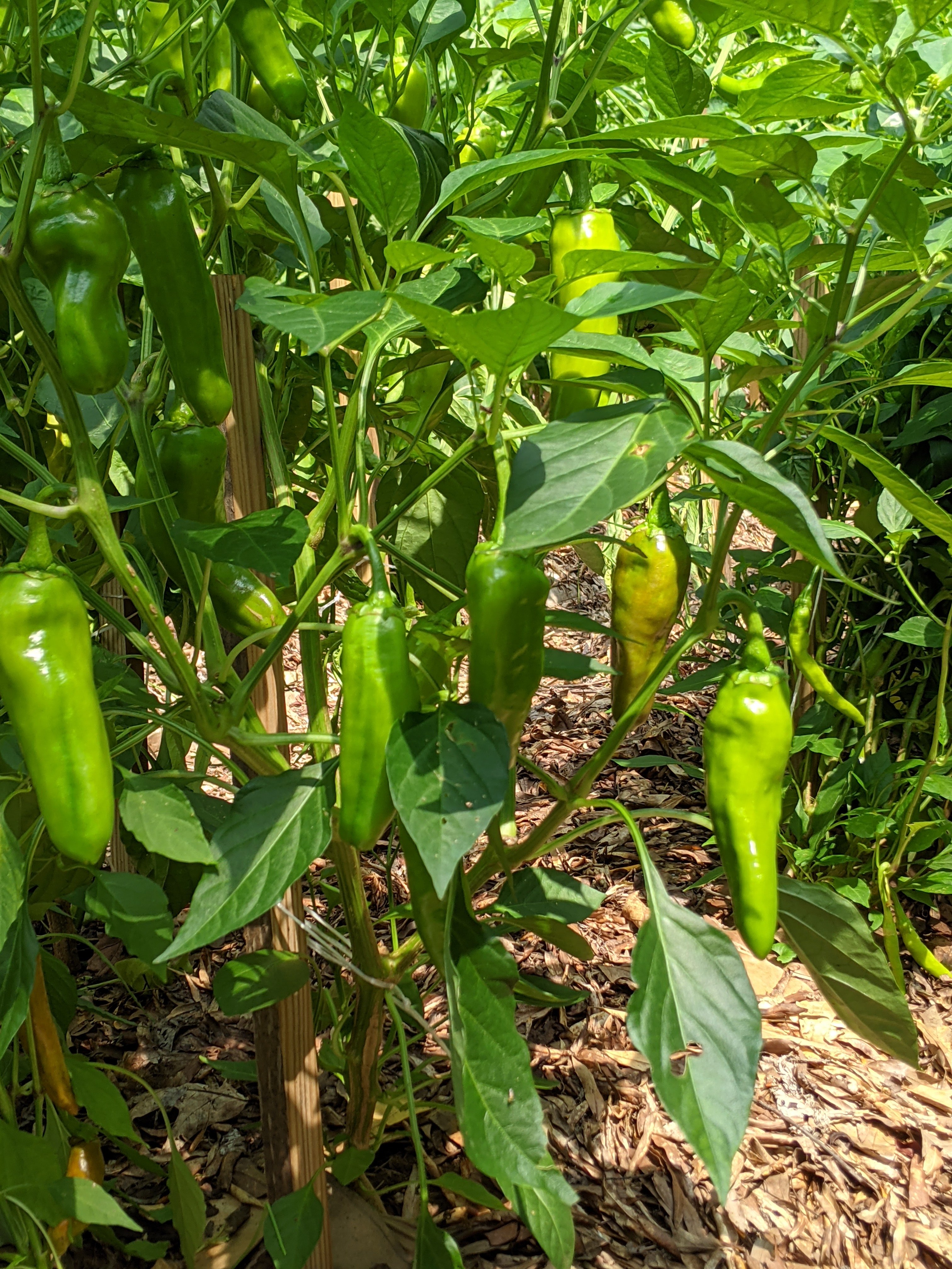 This was a great year for hot peppers. They didn’t mind the oppressive heat and humidity. The sweet peppers like cubenalle, pimento, and California wonder have not had a good year.