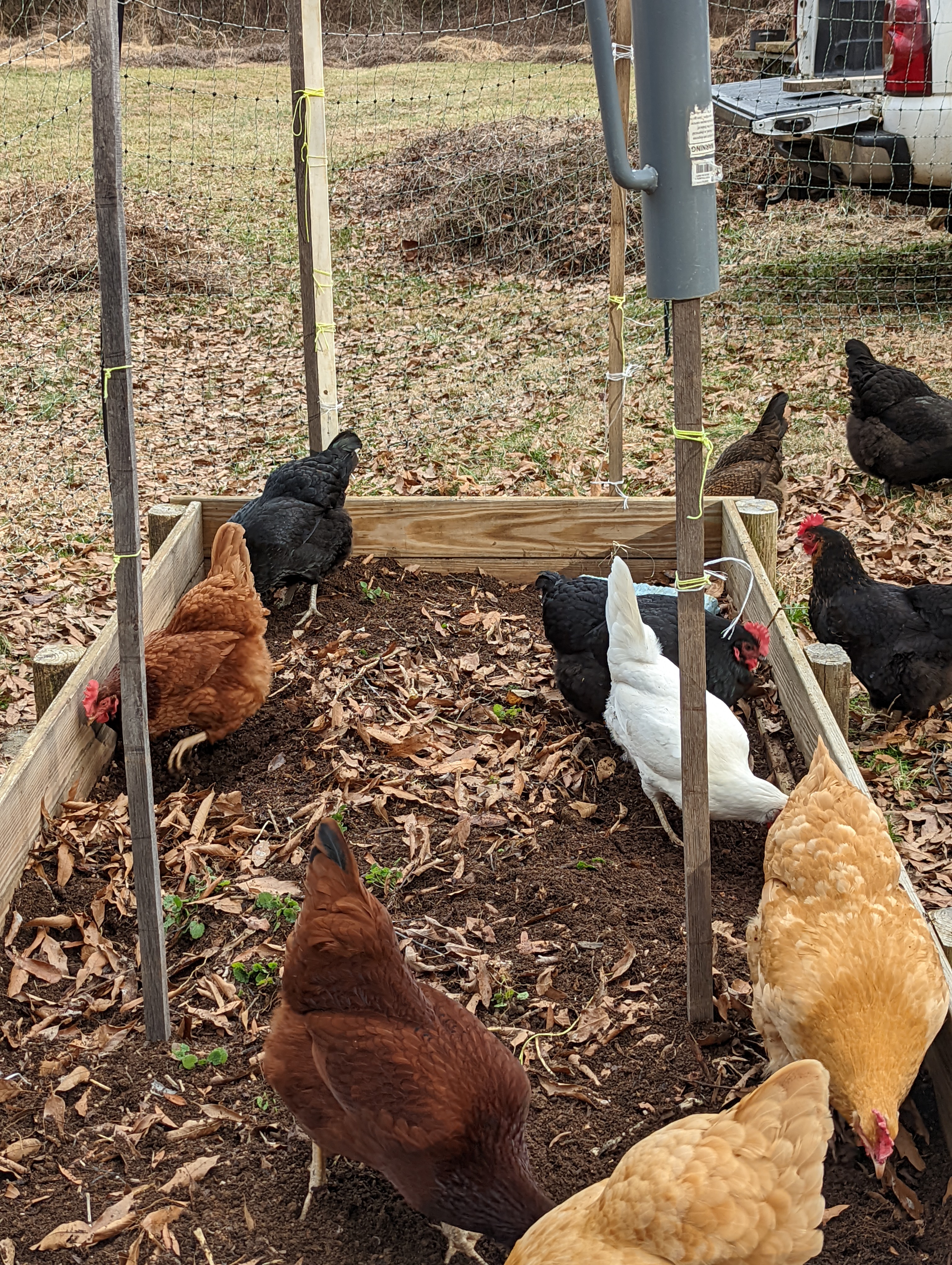 Picked up three Ameraucana’s from Southern States to add to our existing flock. We now have 3 Black sex link, 2 Orpingtons, 3 Rhode Island Reds, 1 Astralorp, 1 white Leghorn, 2 Black Asian, and now 3 Ameraucana chickens. We had some really cold nights but the chickens all seemed to handle the cold in the coop. We are using the deep litter method in the coop which keeps the coop warm.